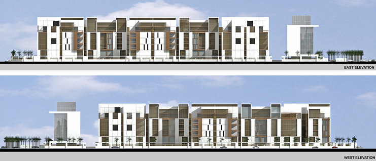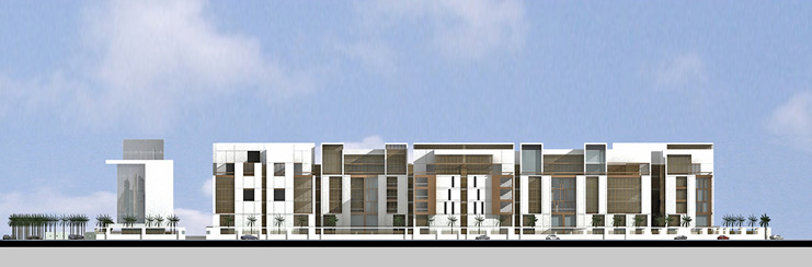 A mixed use luxury development in a busy area of the capital Muscat, the site is strategically located with main roads around. The concept evolved around a main recreational spine with courtyards, water features and shaded gardens, protected from the noise and pollution on the surrounding context.