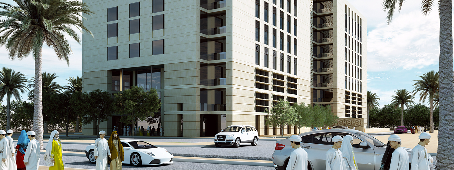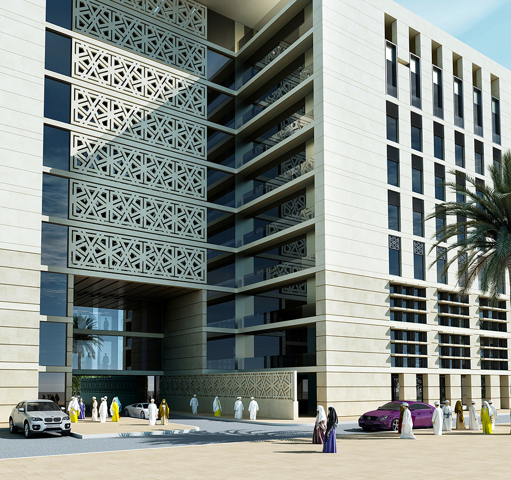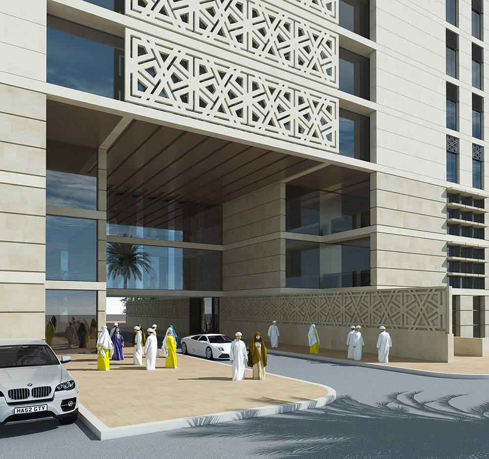 The concept design for a corporate headquarters building and high end automobile showroom in an area of Muscat currently changing from industrial to commercial use. The client brief required to use of robust building technologies with a contemporary approach to the integration of indigenous design and decoration. This design was prepared for Quad Design by members of the VI design team.