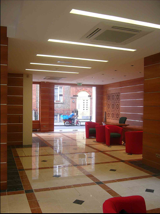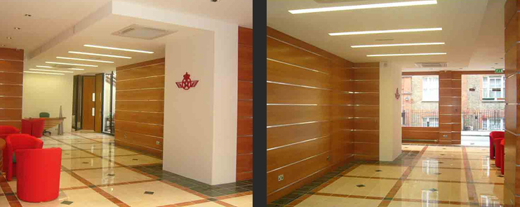 Interior Design and fit out of the Royal Air Maroc Airline main ticket sale outlet and offices on Gosfield Street, in London W1. A modern and functional design inspired by the traditional Moroccan patterns and textures.